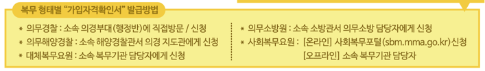 또한 사회복무요원 대체복무요원 등 특수한 경우 가입자격확인서는 아래와 같이 발급 가능합니다.