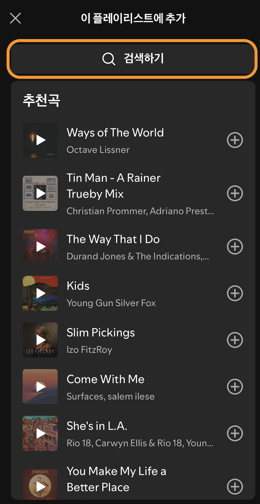 - 검색 기능을 사용하여 추가하고 싶은 특정 노래를 찾으세요.