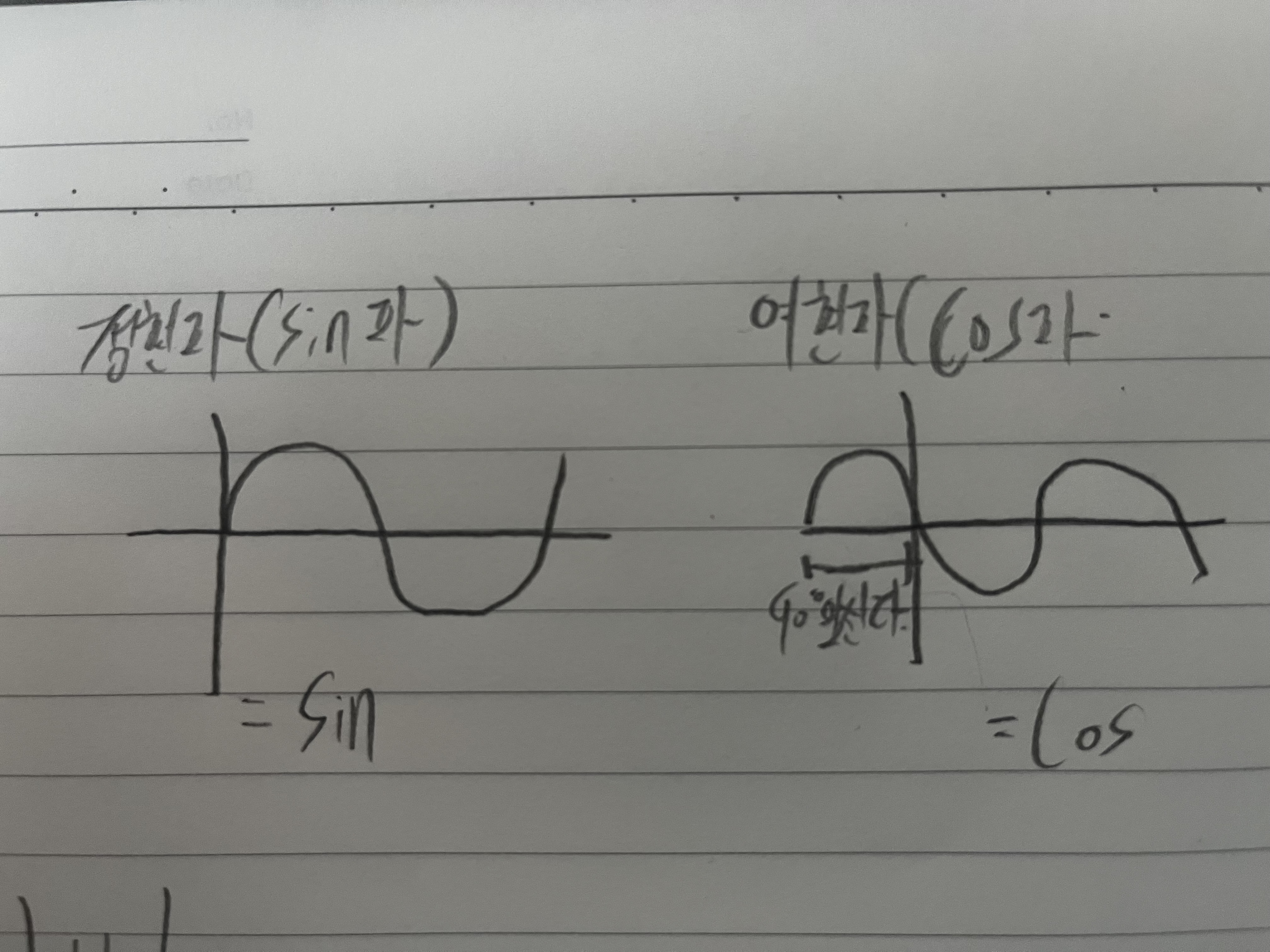 ◼︎ 정현파(sin파)와 여현파(cos파) 모양 및 출발점