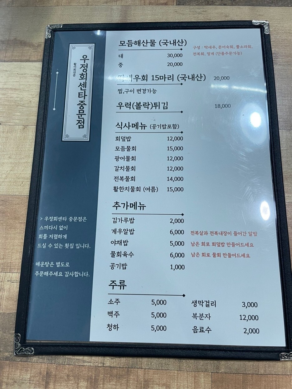 중문 가성비 횟집을 찾으신다면 이 곳 우정회센터에 방문해보세요~