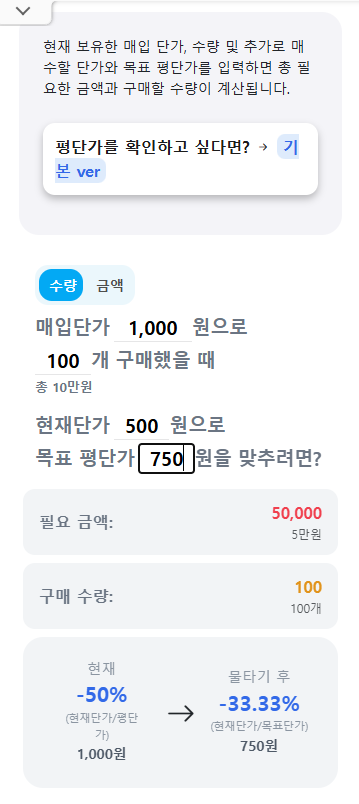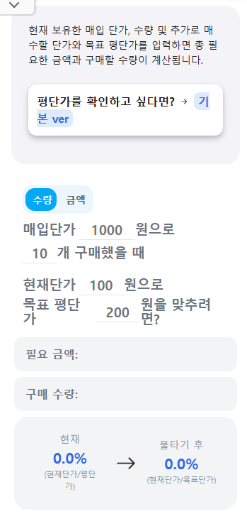 주식 코인 물타기 계산기